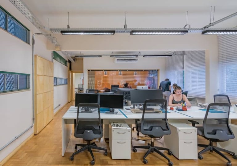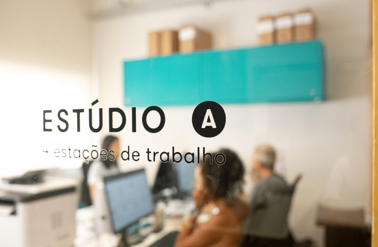 oferecemos 16 estações de trabalho individuais, com acesso a internet de fibra óptica de 150mbps, café, água e luz natural.